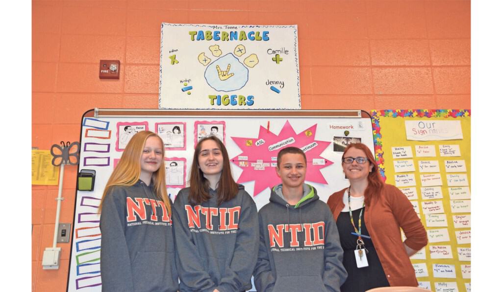 The team was comprised of three students from Olson Middle School — eighth-grader Kirstyn Loftus of Tabernacle, and seventh-graders Jenny Barton of Tabernacle and Aidan Lohne of Medford. Camille Corman of Woodlyn Middle School was also a member of the team. Because it is pretty uncommon to have a lot of children with hearing loss in the same school, the rules for the competition stated team members could live within 50 miles of the schools.
