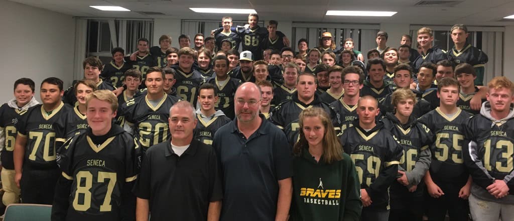 Seneca High School’s Football team raised $1000 dollars for The Darren Daulton Foundation — a foundation that financially supports those who suffer from brain cancer and bran tumors. The idea to raise money for brain cancer came last year when two members of families affiliated with the football team were both affected by brain cancer.
