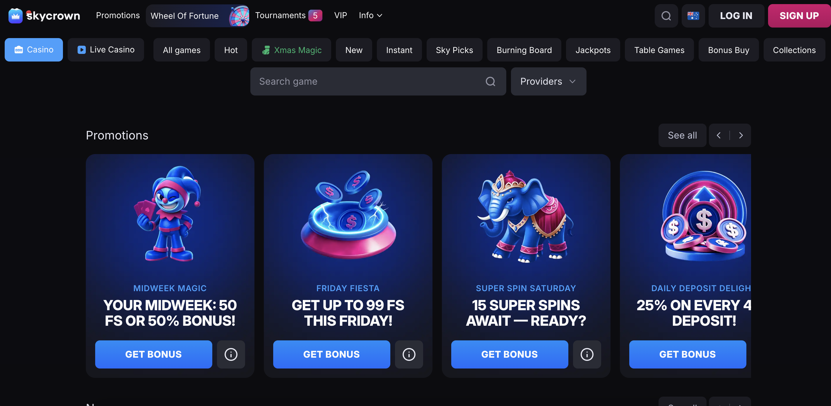 If you think you’ve seen amazing promotions, just wait until you check out the ones available at SkyCrown, where players can enjoy near-daily promotions like Spin & Win Mondays and Friday Fiesta. Plus, any new player can use the bonus code SKY88CROWN, and unlock up to A$8,000 and 400 free spins welcome bonus.