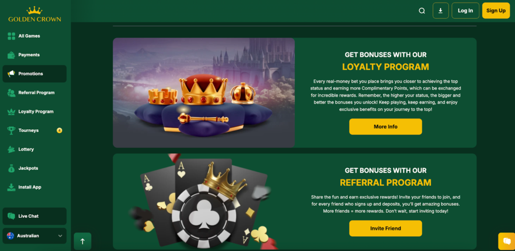 Recommended by one of my new Aussie friends, Ally, who was just as excited as I was to return to Golden Crown casino, this one offers not only a massive library of games but also a generous welcome bonus of up to A$15,000 and 300 free spins.