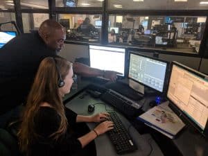 Texting 911 proving to be a success for county; officials aim their sights at better technology Freeholder Jonathan Young looking over the shoulder of Morgan Robbins, a new dispatcher with…