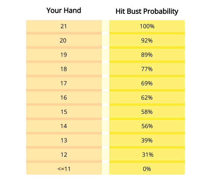- Know when to stand: A general rule of thumb is to stand on 17 (or higher).