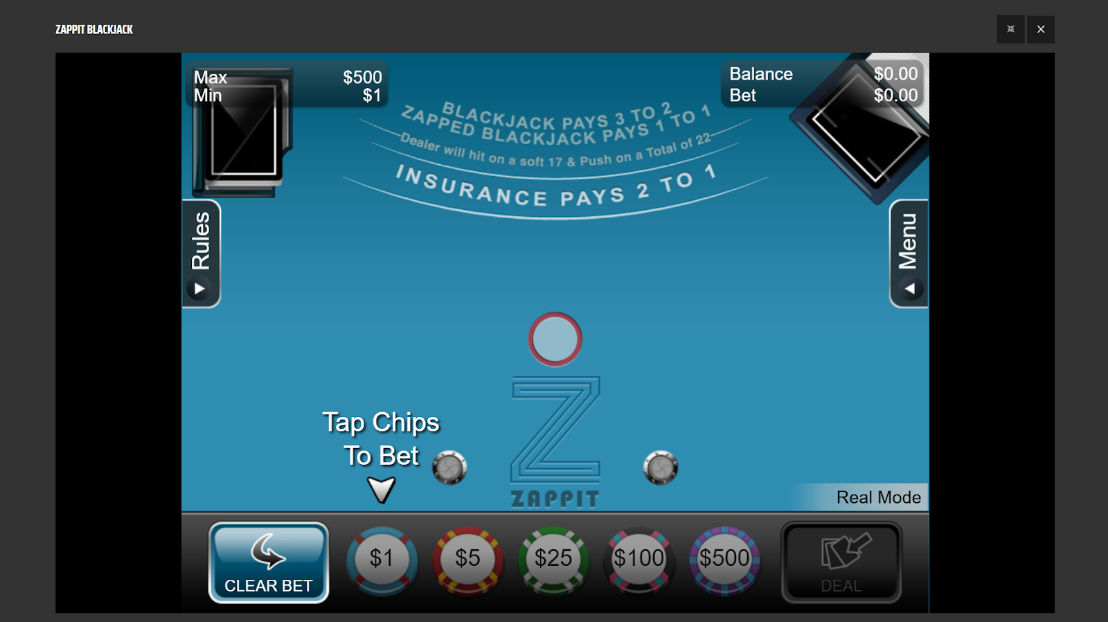 - Games tested: VIP Blackjack, Early Payout Blackjack, Pirate 21, Perfect Pairs, Zappit Blackjack