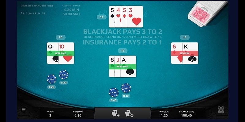 As the name suggests, this version of blackjack lets you play more than one hand. The dealer has to stand on soft 17, and they aren’t allowed to check for blackjack. Meanwhile, you can double down on 9, 10, or 11 and only split once.